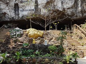 ປາກຖ້ຳເບື້ອງຕາເວັນອອກບໍ່ກວ້າງເທົ່າເບື້ອງ ຕາເວັນຕົກເມື່ອມາເຖິງຈຸດນີ້ ຈະສັງເກດເຫັນທຳມະຊາດປ່າໄມ້ຂຽວງາມ. ຖ້າຢ້ອນອະດີດໄປກັບນິທານ ສະຖານທີ່ດັ່ງກ່າວ, ຈະເປັນບ່ອນນັ່ງຊົມສວນອຸທິຍານຂອງທ້າວຊຽງລຽບ ກັບ ນາງ ແອນ ທີ່ອຸດົມສົມບູນໄປດ້ວຍສັດສາວາ ສິ່ງຕ່າງໆຫລາກຫລາຍສາຍພັນ. ສ່ວນກິດຈະກຳຍ່າງຊົມຫລັກຖານວິມານຮັກ ທ້າວຊຽງລຽບ ນາງແອນ ຜູ້ໂສພາໃຕ້ຜາສາດລາດຊະວັງທີ່ໂອໂຖ ພໍເຂົ້າປາກຖ້ຳຈະຍ່າງເລາະລຽບຕາມຂັ້ນ ໄດເບື້ອງຂວາມື ແລະ ຍ່າງລອດເຂົ້າມາເຖິງດ້ານໃນ ຈຸດທຳອິດແມ່ນບ່ອນກາບໄຫວ້ ຫລື ບ່ອນບູຊາຮູບບັ້ນ ນາງ ແອນ ເພື່ອເປັນສິລິມຸງຄຸນໃນການທ່ອງທ່ຽວ ຈາກນັ້ນກໍສາມາດທ່ຽວຊົມຫີນງອກຫີນຍ້ອຍ ແລະ ກາບໄຫວ້ສານພະພູມຢູ່ພາຍໃນຖ້ຳ ແລະ ຂໍພອນຕ່າງໆຕາມຄວາມເຊື່ອ.