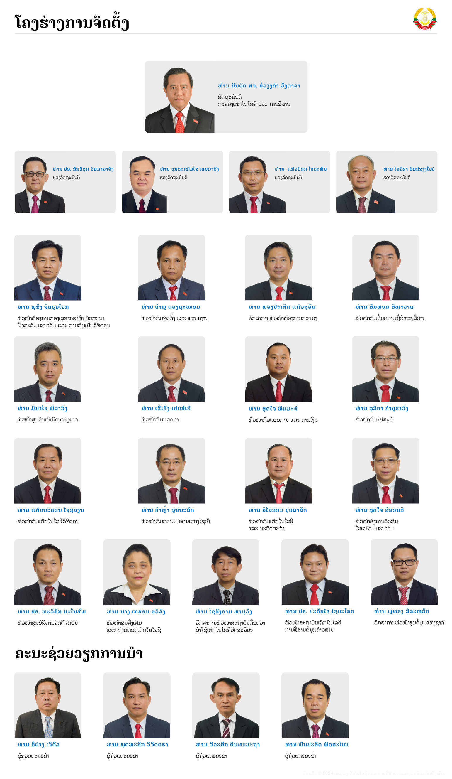 ແຜນວາດໂຄງຮ່າງການຈັດຕັ້ງ ຄະນະນໍາ, ຫົວໜ້າກົມ/ສູນ/ສະຖາບັນ, ຄະນະຊ່ວຍວຽກການນໍາ ກະຊວງເຕັກໂນໂລຊີ ແລະ ການສື່ສານ